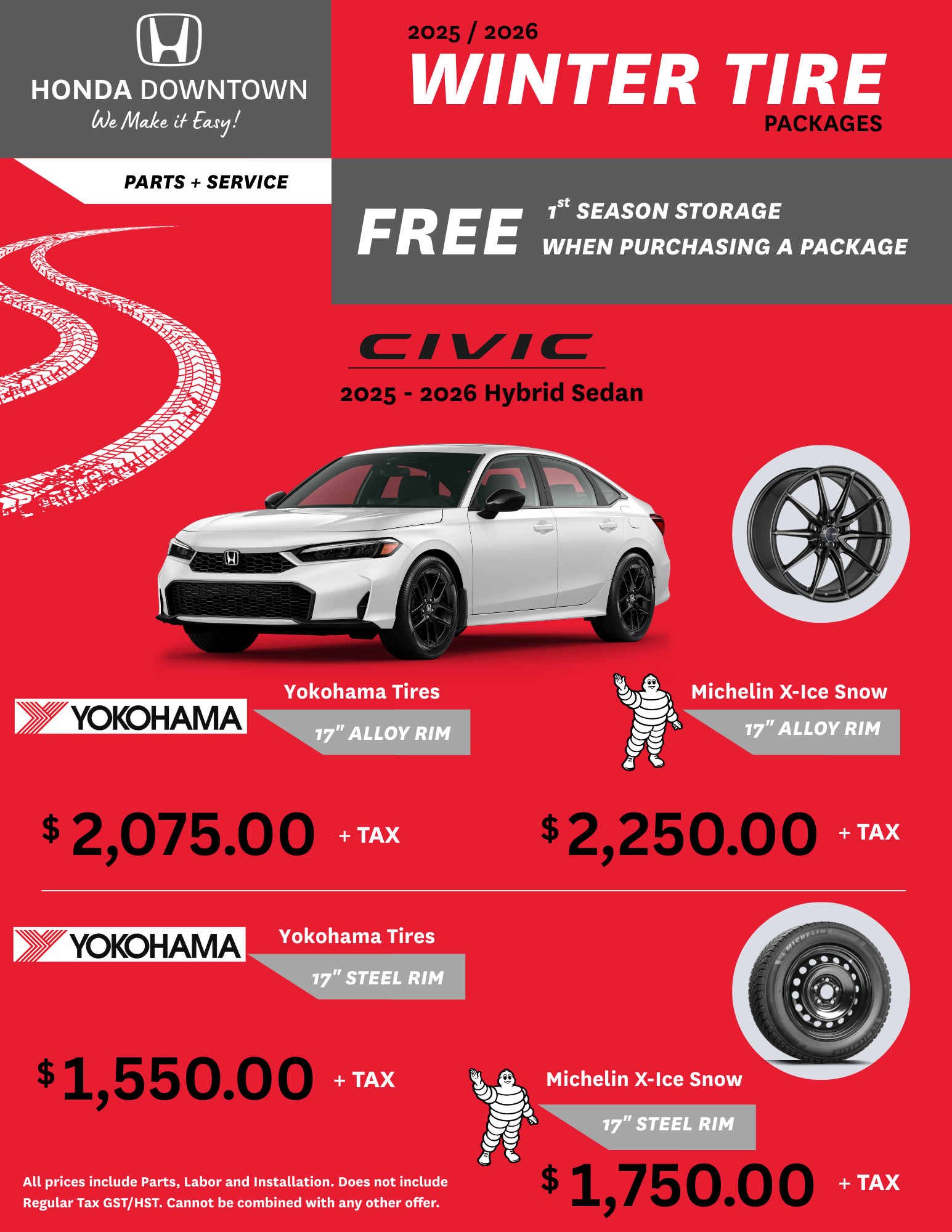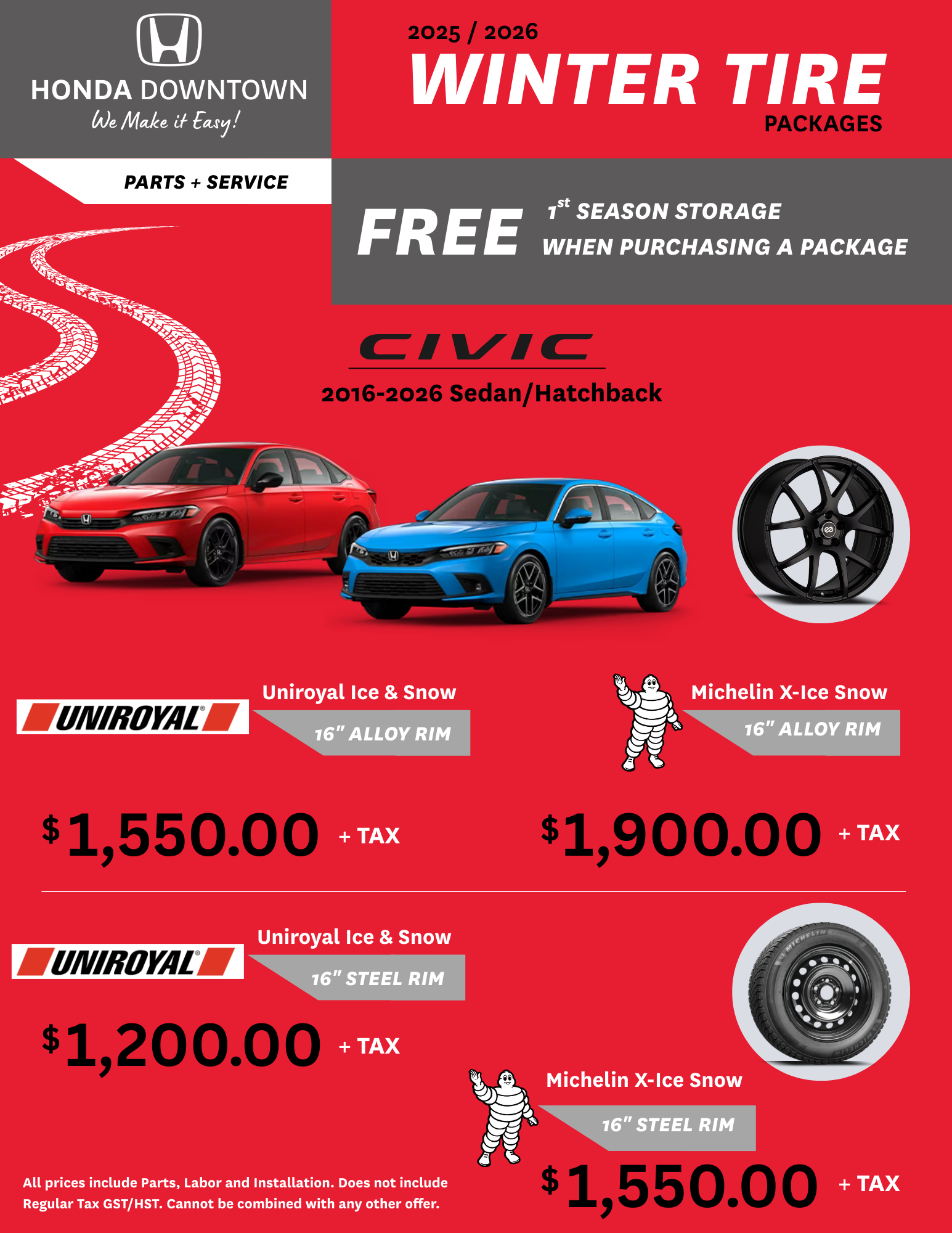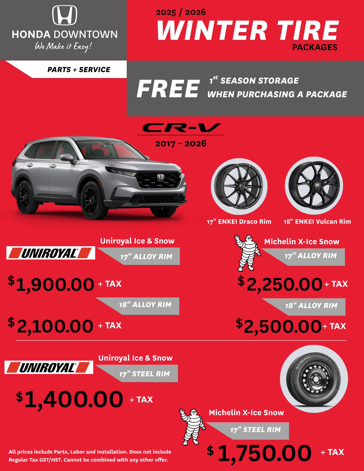 Specials deals are available, please contact our Parts Advisor(s) at parts@hondadowntown.ca for details.