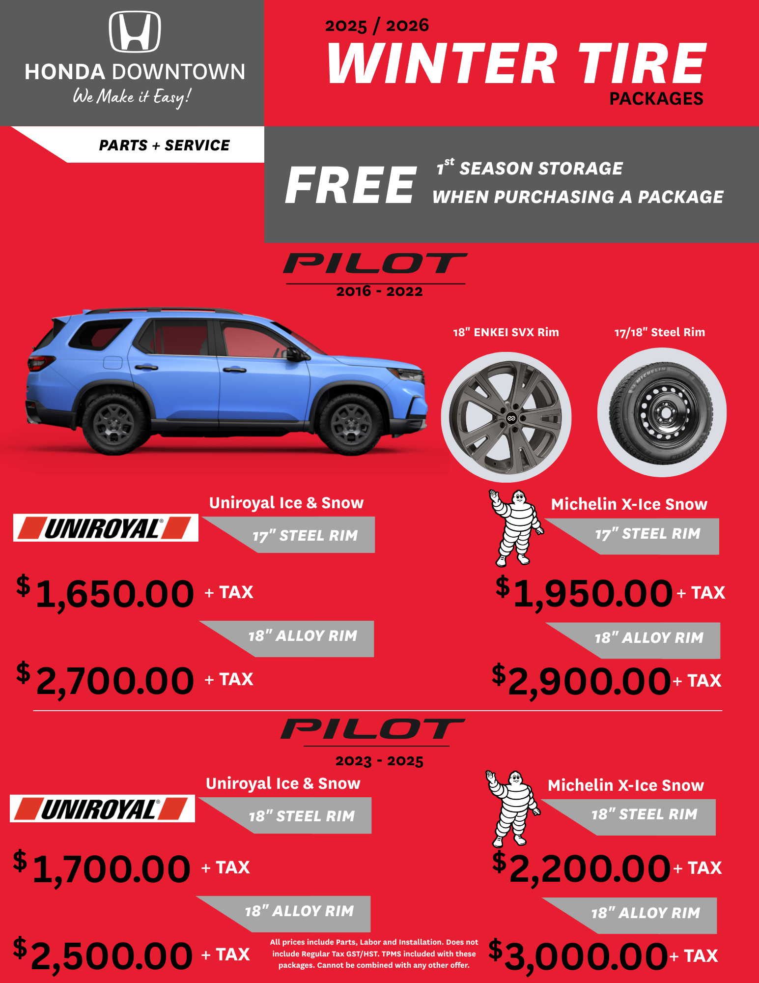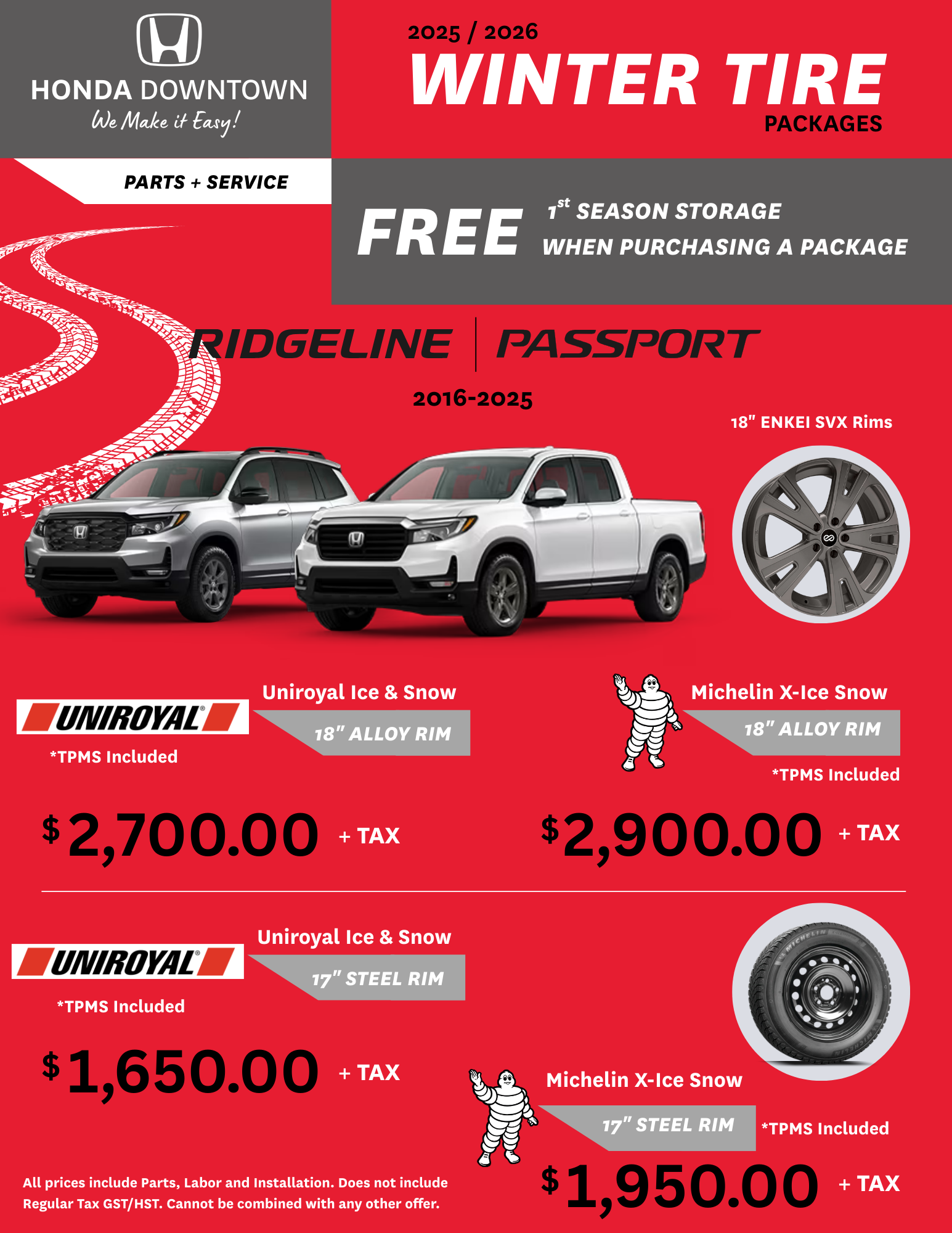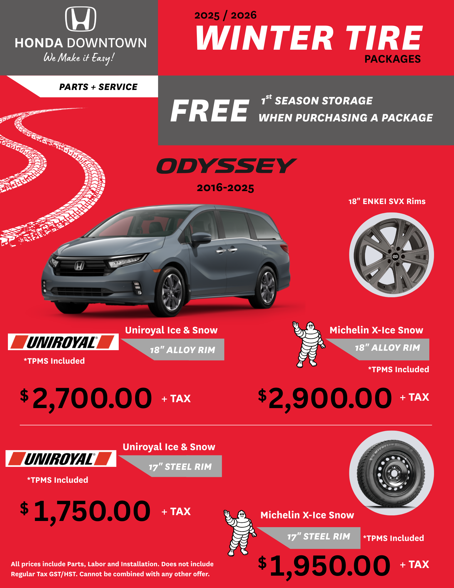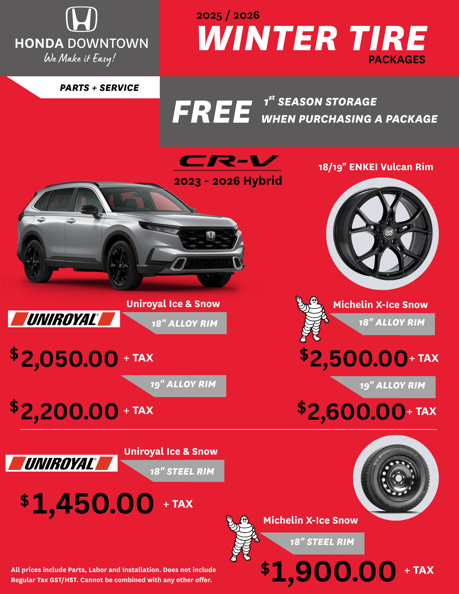 Specials deals are available, please contact our Parts Advisor(s) at parts@hondadowntown.ca for details.